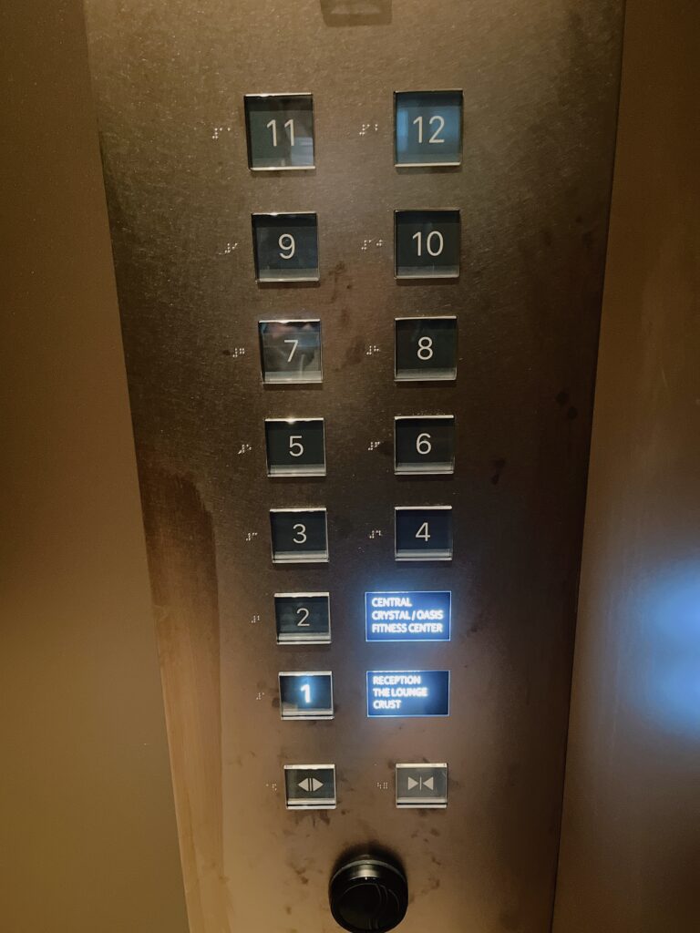 エレベーターではカードキーをかざすと自分のフロアのボタンが押された状態になるので簡単です。(他の宿泊階のボタンを押しても反応しません。)